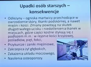 W galerii kilka slajdów zwracających uwagę jak zapobiegać potencjalnym następstwom nieszczęśliwych upadków seniorów / autorstwa prowadzącej /.